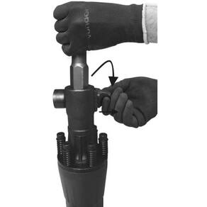 Possui punho auxiliar com ajuste que confere maior conforto ao operador e facilidade no trabalho. Apresenta encaixe hexagonal de 28 mm, que facilita a troca rápida do acessório, cabo tipo D com revestimento emborrachado e sistema de amortecimento, que diminui a vibração.