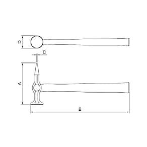 A cabeça possui uma extremidade plana, ideal para golpes precisos, e outra com pena, permitindo moldagens detalhadas.