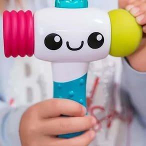 Martelo Mordedor Bebe BANG TOYS O martelo Mordedor Bebê da Bang Toys é o brinquedo ideal para ajudar a aliviar o desconforto da dentição do bebê enquanto proporciona diversão e aprendizado. Seu design colorido e atraente inclui um martelo interativo que emite sons e luzes, tornando a experiência de brincar ainda mais envolvente. Feito com materiais seguros e de alta qualidade, o martelo é fácil de segurar e perfeito para estimular a coordenação motora, sem deixar de lado o conforto do bebê. É uma ótima opção para o desenvolvimento sensorial e para os momentos de descobertas Ficha Técnica: Marca: bang Toys Produto: martelo Mordedor Bebê Idade Recomendada: A partir de 03 meses Cor: multicolorido Material: plástico resistente e atóxico Função: mordedor para alívio da dentição e brinquedo interativo com sons e luzes Pilhas Requeridas: 2 Pilhas AAA não recarregáveis Advertências: Ao limpar o produto, aguarde até que fique seco ao toque antes de entregar à criança. Pilhas não podem ser recarregadas. Diferentes tipos de pilhas e baterias novas e usadas não devem ser misturados. As pilhas e baterias devem ser do tipo recomendado ou . Respeite a polaridade ao colocar as pilhas ou baterias. As pilhas e baterias descarregadas devem ser retiradas do brinquedo. Não coloque os terminais de uma pilha ou bateria em curto-circuito. Ofereça mais conforto e diversão para seu bebê com o Martelo Mordedor Bebê da Bang Toys Com sons e luzes interativas, este martelo ajuda no alívio da dentição de maneira divertida e segura. garanta o seu e proporcione momentos de diversão e aprendizado para o seu pequeno Homologação Inmetro: CE-BRI/ICEPEX-N 01264-25-32
