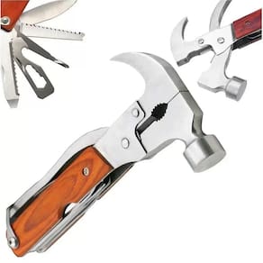 Características do Martelo Multifunção: Fabricado em aço inox resistente a corrosão, cabo com madeira; Equipamento que não pode faltar no seu acampamento, pescaria, ciclismo, montanhismo, viagens e outras atividades externas como também em casa ou no trabalho, é multifunção; Acompanha bolsa em nylon reforçado para prender na bainha do cinto;