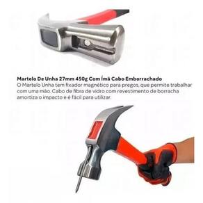 O Martelo Unha tem fixador magnético para pregos, que permite trabalhar com uma mão. Cabo de fibra de vidro com revestimento de borracha amortiza o impacto e é fácil para utilizar.