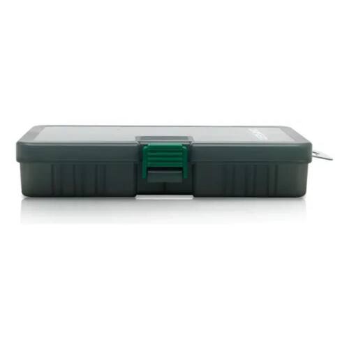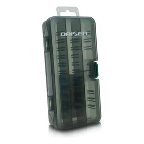 Estojo daisen ds 804-gre O estojo daisen ds 804-gre é ideal para os pescadores que buscam organização e segurança no transporte de iscas e anzóis. Com design compacto, tampa fumê translúcida e fecho lateral reforçado, garantem praticidade e proteção, mesmo em ambientes úmidos. As divisórias internas ajustáveis permitem personalizar os compartimentos conforme a necessidade, tornando-o indispensável para pescarias em água doce ou salgada Imagens meramente ilustrativa, iscas não acompanham o produto.