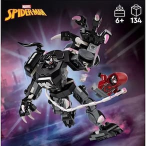 Abra o baú do robô, coloque Venom dentro e transforme o simbionte alienígena em uma mega máquina de combate Quando Miles Morales entra em ação com seus atiradores de teia portáteis e corda, as pernas e braços articulados do robô giram para agarrar Miles com suas garras. Mas Miles enrola sua corda de teia em volta do robô e se liberta. Com Mech Armor de Venom vs. Miles Morales, a ação de batalha da Marvel nunca para