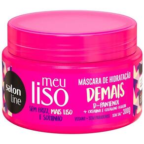 Modo de usar: Com os cabelos limpos e úmidos, aplique uma quantidade da Máscara De Hidratação Intensa Salon Line Meu Liso Demais no comprimento e pontas, massageado suavemente em movimentos de cima para baixo. Deixe agir de 3 a 5 minutos e enxágue. Pra desmaiar de vez, use a linha Meu Liso Demais completa.