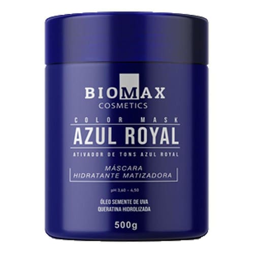 A máscara hidratante matizadora azul royal é enriquecida com óleo de semente de uva, queratina e pigmento, que intensificam e revitalizam a cor dos cabelos, sendo indicada entre uma coloração permanente e outra.