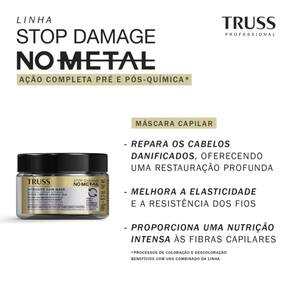 A Máscara Capilar Truss No Metal Damage 180g é o tratamento intensivo que transforma cabelos danificados e quimicamente tratados em fios fortes, brilhantes e com toque de salão. Desenvolvida para restaurar profundamente a fibra capilar, ela é a escolha ideal para quem passou por descolorações, colorações ou alisamentos e busca recuperar a vitalidade do cabelo desde a primeira aplicação. Sua fórmula exclusiva conta com um poderoso Blend de Miracle Oils, que repõe aminoácidos e lipídios essenciais, devolvendo elasticidade, resistência e brilho natural aos fios enfraquecidos. Além de nutrir, a tecnologia No Metal atua na neutralização de resíduos metálicos acumulados após procedimentos químicos, evitando a oxidação e a quebra dos fios, prolongando a saúde e a cor do cabelo.