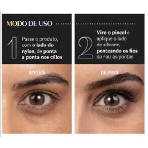 Aplique primeiramente a parte de nylon da máscara no sentido da raiz às pontas para dar volume aos cílios e em seguida o aplicador de silicone para cílios mais alongados e definidos. Você pode reaplicar quantas vezes desejar para obter o efeito desejado.