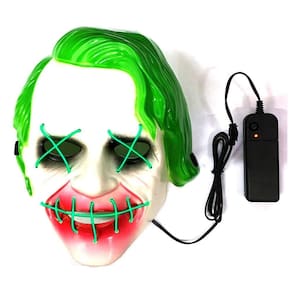 Máscara coringa com led verde halloween fantasia contém: 1 unidade composição: plástico tamanho aproximado: 22x19cm cor do led: verde alimentação: 2 pilhas aa não inclusas atenção: imagem meramente ilustrativa. Pode ocorrer mudanças no tom da cor para o produto real ou mudanças na embalagem sem aviso prévio por parte do fornecedor/fabricante.