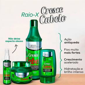 Ideal para o Crescimento Capilar, a Máscara Cresce Cabelo Forever Liss promove o longo dos sonhos que você sempre quis. Fortifica a fibra capilar, nutrindo e restaurando a saúde dos fios. Com cabelos mais hidratados e resistentes, seus cabelos crescerão com saúde e rapidez. À partir de seu complexo fitoterápico natural, aliado à tecnologia de ativos como a biotina, ceramidas, D´Pantenol e a vitamina A, proporciona um crescimento acelerado dos fios com brilho e nutrição como você nunca viu. A máscara Cresce Cabelo pode ser utilizada na etapa de hidratação no cronograma capilar.