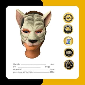 Fácil de Limpar: Feita de látex lavável, a máscara permite uma fácil manutenção, podendo ser limpa após o uso para maior durabilidade e reutilização.