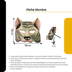 Ideal para deixar sua fantasia ainda mais aterrorizante e fazer aquela pegadinha assustando seus amigos A Máscara é presa por um elástico atrás da cabeça e ela possui orifícios Para olhar e respirar sendo as características e pinturas bem realistas.