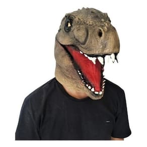 Máscara De Látex Cabeça Dinossauro Velociraptor Halloween - Marrom