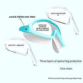 Máscara De Natação Gold Sports Vision Ajuste Rápido - Juvenil High Definition Característica 1. Moldura de cloreto de polivinilo com revestimento resistente a impacto. 2. Campo extra largo de visão: Nossa máscara de natação Gold Sports Infanto-Juvenil são projetados com lentes mais largas e possuem campo de visão de 180 graus. Proporciona máximo campo de visão e clareza para garantir seu filho tem uma experiência de natação mais confortável. 3. Design funcional: O novo botão de ajuste das tiras facilita o ajuste. O frame se encaixa perfeitamente, e o design mais largo distribui a pressão de forma mais uniforme, dando sua criança uma experiência de uso confortável. 4. Proteção antiembaçante e UVA e UVB400: Nossa máscara de natação infanto-juvenil são equipados com lentes de policarbonato resistente a impacto. Todas as lentes proporcionam proteção antiembaçante e anti-UVa e UVB400, que podem proteger os olhos do seu filho dos danos dos raios UV e proporcionar a melhor visão. 5. Os materiais mais seguros: Nossa máscara de natação é feito de silicone inodoro, hipoalergênico. O gascket da Mascara de natação possui Design 3D ergonômico encaixa perfeitamente na cavidade ocular de crianças e Adolececentes e seu silicoce e ultra soft anti alérgico. Acompanha um par de protetor de ouvido de silicone ultra soft e anti alérgico Marca: Gold Sports Composição: policarbonato, silicone e PVC -Garantia: 01 mês somente contra defeito de fabricação