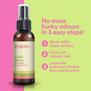 Lidar com o chamado da natureza não deve ser embaraçoso. Com o spray de banheiro Mask, cuide dos negócios com confiança em casa e em qualquer lugar. Ao contrário dos purificadores de ar comuns para banheiros, o Mask resolve o problema antes que ele comece, criando uma barreira na superfície da água do vaso sanitário, retendo odores com eficácia. Nosso spray de banheiro para viagem substitui naturalmente qualquer cheiro por um aroma agradável e persistente, garantindo uma experiência de banheiro fresca. Feito com óleos essenciais e aromáticos. Este spray de banheiro é feito de uma mistura de seis ingredientes saudáveis, fornecendo um aroma limpo e refrescante que retém e mascara cheiros indesejados. Cada frasco de 3,4 fl oz é elegante e discreto, o que o torna um complemento essencial ao seu kit de viagem. Esteja você no trabalho, em um banheiro público ou na casa de seu parceiro, o spray de banheiro da Mask é seu companheiro confiável. Usar o spray de banheiro Mask é simples: basta agitar bem o frasco, segurá-lo 6 polegadas acima da água do vaso sanitário e pulverizar seis vezes. Em seguida, faça seus negócios com confiança e tranquilidade, como de costume. Acabe com os odores e desfrute de uma experiência de banheiro com o Mask Toilet Spray.