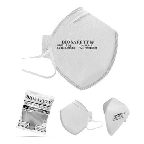 Respirador semifacial descartável, classe PFF2 ? S, modelo dobrável, sem válvula de exalação. Composição: Confeccionado em quatro camadas, sendo: camada externa de fibra sintética de polipropileno; camada meio de fibras sintética estrutural; camada filtrante de fibra sintética Meltblown com tratamento eletrostático, camada interna de fibra sintética de contato facial. Com tirantes de cabeça de elástico para sustentação da peça facial e clip nasal interno em metal revestido de plástico. C.A: 44.441