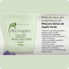 Máscara Detox Para os Pés Lavanda Argila Verde Descansa Esfolia Hidrata Dermopés Abelha Rainha 130g REF 2065 A Importados da Malu apresenta... Máscara Detox Para os Pés Lavanda Dermopés Abelha Rainha 130g Sua jornada para pés macios, renovados e radiantes começa aqui. -remove impurezas, poluentes, resíduos, suor e combate a oleosidade; -hidrata com efeito ; -reduz o inchaço; -ativa a circulação sanguínea; -esfoliação sem dor; -descansa os pés; -possui ação , refrescante e anestésica; -textura macia de fácil aplicação e toque suave. Conheça a indulgência da Máscara Detox Para os Pés Dermopés, sua aliada para pés rejuvenescidos. Formulada com argila verde e extratos botânicos, esta máscara exclusiva nutre e revitaliza, removendo impurezas e suavizando a pele áspera. Seu poder detox proporciona uma experiência de spa em casa, enquanto a fórmula inovadora cuida das necessidades específicas dos pés. Com propriedades calmantes, ela alivia a fadiga, deixando uma sensação refrescante. Sua textura luxuosa e aroma suave criam uma experiência relaxante única. A Máscara de Argila Verde Dermopés oferece uma leve esfoliação e limpeza aos pés, removendo as impurezas, poluentes e resíduos do ambiente. Seus ativos emolientes e refrescantes garantem que seus pés fiquem saudáveis e revigorados, aliviando o do dia a dia. Principais Ativos: -tersil G: Combate a oleosidade. -mentol: proporciona uma agradável sensação de frescor, aliviando dores musculares graças à sua ação anestésica. Seus pés vão agradecer por esse alívio revigorante. -exfor R: Promova uma esfoliação suave e sem dor com o Exfo r, deixando seus pés livres de impurezas e prontos para brilhar. Nota: Os resultados podem variar de pessoa para pessoa. Consulte um dermatologista em caso de dúvidas ou preocupações com a saúde da sua pele. PROCESSO ANVISA: 25351.633965/2023-21 REFERÊNCIA: 2065