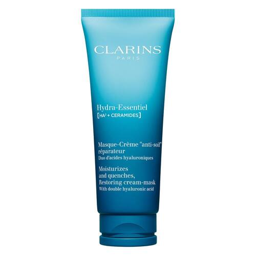 NOVA máscara facial Hydra-Essentiel da Clarins | Máscara facial hidratante | Pele visivelmente mais volumosa + 24 horas de hidratação* | Revive o brilho | Dose dupla de ácido hialurônico | Suaviza visivelmente | Todos os tipos de pele | 2,5 onças - Obtenha uma pele visivelmente mais volumosa após 1 aplicação* e hidratação de 24 horas** com esta máscara facial supersaciante. Formulado com uma dose dupla de ácido hialurônico para reter a umidade.