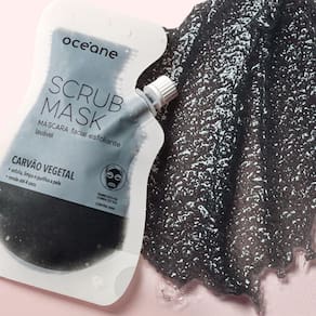 Feita com carvão vegetal e açúcar negro, a máscara promove a esfoliação da pele, removendo impurezas e células mortas.