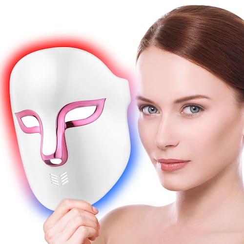 A máscara facial de LED é eficaz para aliviar rugas e acne no rosto.