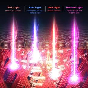 - Terapia de luz azul vermelha: a luz vermelha tem eficácia excepcional no desbotamento das linhas finas e na da firmeza da pele; a luz azul pode ajudar a aliviar papluas e acne inflamatória
