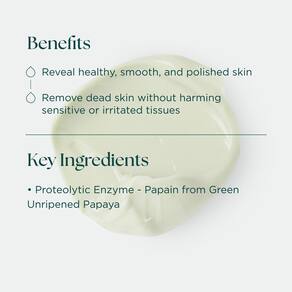 - Esfolia suavemente as células mortas da pele usando enzimas proteolíticas de mamão para uma tez lisa e radiante.