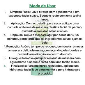 A Máscara Facial de Pepino para Pele Oleosa da Facinatus é formulada para ajudar a controlar a oleosidade, reduzir o brilho excessivo e promover uma pele mais equilibrada. Com extrato de pepino, conhecido por suas propriedades adstringentes e refrescantes, esta máscara ajuda a limpar os poros profundamente, removendo impurezas e deixando a pele com uma sensação de frescor e revitalização. Benefícios: Controla a oleosidade Reduz o brilho excessivo Limpa os poros profundamente Sensação refrescante e revitalizante Modo de Usar: Aplique uma camada uniforme da máscara sobre a pele limpa e seca, evitando a área dos olhos e lábios. Deixe agir por 15-20 minutos. Enxágue abundantemente com água morna. Utilize de 1 a 2 vezes por semana, conforme necessário, para melhores resultados. Marca: Não Informado Ean: 7898920487765