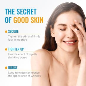 - Absorção rápida de 15 minutos. Absorve rapidamente para refinar os poros, aumentar o brilho e deixar a pele brilhante, sem necessidade de enxágue para horas de hidratação.