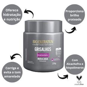 Oferece hidratação e nutrição com a intensidade que os fios grisalhos precisam. Tem agentes condicionantes, dispensando o uso de condicionador. Corrige e evita o tom amarelado. Os cabelos ficam revitalizados e com um lindo brilho prateado. Com Alcachofra e biopolímeros. pH 4,0. Vegano. Zero% Parabenos e Petrolatos. Dermatologicamente testado. Não testado em animais.