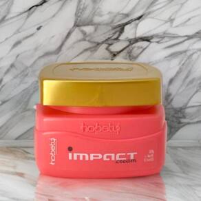 Máscara hobety impact morango 300g É a continuidade do tratamento de alto impacto, ideal para cabelos quimicamente tratados. Possui alto poder de hidratação e nutrição. Em alguns minutos devolve a emoliência, brilho e sedosidade aos cabelos, deixando uma irresistível fragrância. Modo de uso: aplicar o produto sobre os cabelos limpos e molhados, emulsionar uniformemente e enxaguar.