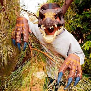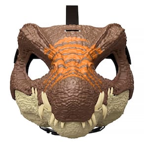 A brincadeira fica mais séria com esta autêntica máscara inspirada em Jurassic World Rebirth! Este acessório de fantasia está pronto para recriar momentos do filme mais recente ou de toda a franquia, criando novas cenas de caos com dinossauros. A máscara apresenta detalhes realistas, como textura da pele, cor e dentes, para que as crianças possam "se transformar" neste dinossauro familiar! A mandíbula que abre permite um movimento de mastigação para uma brincadeira ativa. Uma tira segura garante um ajuste confortável e as aberturas para os olhos e nariz proporcionam fácil colocação e visibilidade. As cores e decorações podem variar.