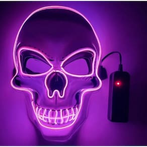 Produzida em material plástico resistente, a máscara possui fios de LED que atravessam as regiões dos olhos, nariz e boca, proporcionando um efeito luminoso incrível. Com elástico de larga espessura na parte de trás e orifícios estrategicamente posicionados para os olhos, nariz e boca, ela garante conforto, visibilidade e facilidade na respiração.