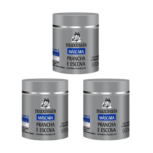 Máscara maxihair 500g prancha e escova 3 em 1 - kit com 3un