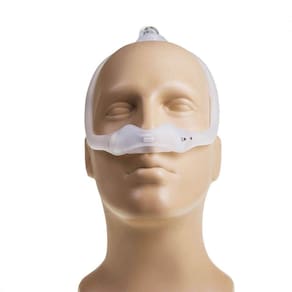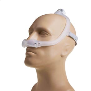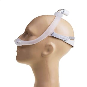 A conexão com o tubo fica na parte superior da cabeça, proporcionando maior liberdade de movimentos durante o sono. O fluxo de ar passa pela estrutura da máscara e é entregue às narinas através das almofadas nasais. Mesmo ao deitar-se de lado, um dos lados será fechado, mas o fluxo de ar continuará fluindo livremente pelo outro lado, sem afetar a terapia.