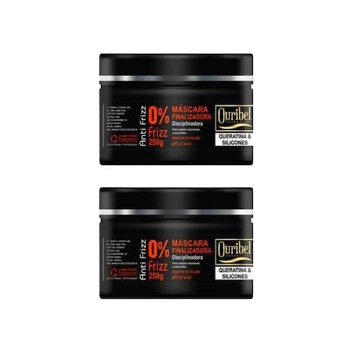 Na compra deste kit será enviado 02 unidades da máscara ouribel anti frizz 250g cada Descrição: A máscara ouribel anti frizz 250g é uma máscara capilar que promete disciplinar os cabelos rebeldes, frisados e crespos. Ela é enriquecida com queratina e silicones, que hidratam profundamente os fios e reduzem o frizz. A máscara também pode ser usada como finalizador, deixando os cabelos macios e brilhantes. Modo de usar: Após lavar os cabelos com shampoo e condicionador, aplique a máscara no cabelo úmido, massageando suavemente por alguns minutos. Deixe agir por 10 minutos e enxágue com água fria ou morna. Seque parcialmente e finalize com o leave-in anti frizz ouribel.