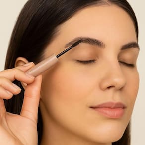 Aplique o produto na sobrancelha, penteando de fora para dentro para dar volume, e para alinhar, na mesma direção dos fios.