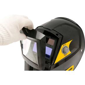 Oferece mais tecnologia, praticidade e segurança nos trabalhos com solda, sendo uma referência em inovação. Dispensa a troca de lentes durante o processo de solda e ajusta-se à capacidade visual de cada operador através do botão de ajuste de tonalidade, que varia de 9 a 13. Conta com ajuste da velocidade de escurecimento da lente, fazendo com que permaneça escura por mais tempo ou fique clara rapidamente ao término da solda. Permite o ajuste de sensibilidade, responsável pela velocidade que o sensor leva para ativar a proteção da máscara, o que acontece instantaneamente, cerca de 1/10.000 segundos assim que o raio da solda chega ao sensor, protegendo por completo a visão do operador. Alimentação por bateria de lítio/células solares. Tonalidade no estado claro: 4. Área de visão: 96 mm x 42 mm. Dimensões do filtro: 110 mm x 90 mm x 8 mm.