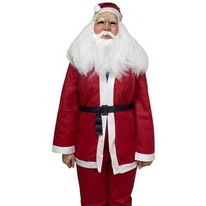 Fantasia completa: Calça Vermelha, Gorro Clássico, Casaco Vermelho, Cinto e a máscara SUPER REALISTA.