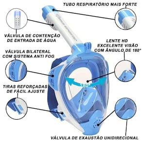 Nossa Mascara Subaquática de de Mergulho Gold Sports Sea Full Face Com Snorkel é muito mais longo do que a versão antiga, por isso é mais fácil de desmontar e respiração mais suave.Nosso suporte de câmera de máscara de snorkel é ajustável e móvel, você pode liberar para ajustar a altura. Enquanto o suporte da câmera da versão antiga é corrigido lá. A máscara de mergulho é feita de silicone líquido, é ambientalmente correta e anti-alérgica. Enquanto antes versão é feita de silicone normal. Nossa máscara quando você mergulha a válvula fecha automaticamente sem deixar entrar a água. Respirando naturalmente, a máscara de snorkel facial é muito mais fácil de usar do que a tradicional com o tubo respiratório com dupla entrada e 2 bolas de vedação quando submersa. Sua lente panoramica posui uma area de de 180 graus de visulaização. A Máscara full face snorkel deixá-lo tirar mais proveito de suas aventuras subaquáticas. Headband ajustável do tecido elástico, fácil de usar e adequado para todos os tipos de forma da cabeça. Mais fácil do que nunca respirar confortavelmente pela boca ou nariz enquanto você está mergulhando Design de fluxo de ar duplo, respirando mais suavemente, qualquer pessoa que não queira respirar suavemente ao mergulhar. Possui um novo sistema de dupla válvulas bilaterais e unidirecional de exalar co2 tornando sua lente anti-embaçante. Máscara com Snorkel:1 peça Plugue auricular:1 par Mesh Bag:1 peça Manual do usuário:1 peça Marca: Gold Sports Garantia: 01 mês contra defeito de fabricação material: Silicone liquido, poli carbonato, PVC e Poliester