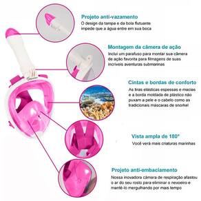 Máscara Subaquática de Mergulho Full Face Gold Sports Com Snorkel - Rosa - S-M