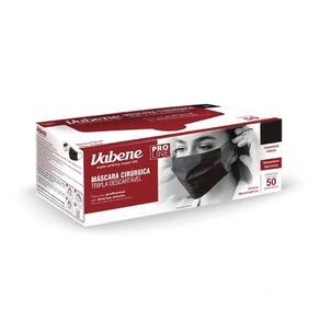 Máscara TNT Tripla Clipe Nasal Vabene Preta Caixa Com 50 Unidades