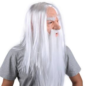 Máscara Velho Ancião Látex - Cabelo e Barba Branca para Halloween / Fantasia Vivencie a presença mística e sombria de um ancião com esta Máscara de Látex Velho Ancião com Cabelo e Barba Branca, ideal para fantasias de sábio, mago, necromante ou figura ancestral em festas de Halloween, eventos temáticos e performances. Características: Látex de alta qualidade com textura envelhecida e realista Cabelo e barba branca sintética acoplados que aumentam o realismo da máscara Cobertura facial completa - testa, face lateral e queixo - com aberturas para olhos, nariz e boca Tamanho único adulto , ajustável com elasticidade natural do látex Expressão detalhada: rugas profundas, marcas de idade, olhar intenso, enfatizando o visual de um velho sábio ou figura ancestral Medidas: 23cm A x 20cm L x 27cm C Marca: Não Informado