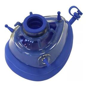 as máscaras faciais de silicone azul são autoclaváveis e permitem o ajuste da pressão do cuff para uma melhor vedação durante o procedimento.
