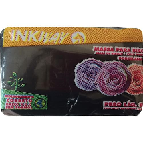 Massa biscuit inkway 400 grEcologicamente correto, baixo v.O.C, sem formal. Aplicações: massa pronta para modelagem em biscuit. O tingimento pode serfeito com tinta para tecido ou depois seca pode ser pintada com a tinta fosca para artesanato. Secagem ao ar. Após a secagem, a massa pode sofrer variação de tonalidade e tamanho. Depois de aberta, envolver a massa em filme plástico retirando todo o ar e guardar em saco plástico, manter fechada para evitar ressecamento. Para conservar melhor as peças depois de secas, aplique uma camada de verniz. Não tóxica. Massa natural ecologicamente correta, entretanto quando pigmentada, pode perder esta condição. Composição: resina de pva, água, amido, plastificantes, aditivos, conservantes e pigmentos (exceto incolor). Produto não comestível.Ficha técnica- Cor: Preto