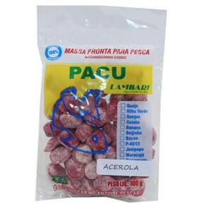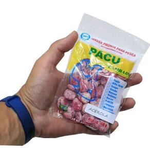 Massa Pesca Pronta Sabor Acerola Para Pacu Pesqueiro Rio Lago Pronto para a pescaria, basta abrir o saquinho e iscar no anzol, com o tamanho ideal para a pescaria, sabor selecionado pessoalmente por pescadores experientes, para dar maior resultado. Ótima opção para pescaria em rios, pesqueiros e represas e açudes. Muito utilizado na pescaria de rodadinha / pingadinha e na espera, para pescaria de pacu, tilapia, piau, piapara entre outros peixes.