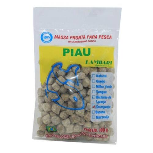Massa Pesca Sabor Caranguejo Isca Para Piau Pesqueiro Rio Lago Pronto para a pescaria, basta abrir o saquinho e iscar no anzol, com o tamanho ideal para a pescaria, sabor selecionado pessoalmente por pescadores experientes, para dar maior resultado. Ótima opção para pescaria em rios, pesqueiros e represas e açudes. Muito utilizado na pescaria de rodadinha / pingadinha e na espera, para pescaria de pacu, tilapia, piau, piapara entre outros peixes.