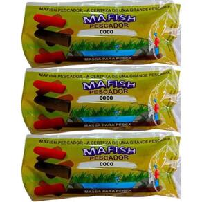 Massa Pronta Mafish Pescador 200g Coco A Massa Pronta Mafish Pescador Sabor Coco é uma isca tradicional que se destaca pelo forte aroma e alta atratividade, ideal para capturar grandes espécies como Pacu, Tambaqui, Piau, Matrinchã, Dourado e Pintado. Pode ser Utilizado tanto em pesqueiros quanto em ambientes naturais, oferecendo praticidade e ótimo rendimento na pescaria. Com composição ecologicamente correta, reúne ingredientes como raspa de queijo, farinha de trigo, sangue de boi, milho verde, banana, ração de peixe e gordura animal. Sua textura facilita o uso no anzol, sendo indicada para pescadores que desejam resultados rápidos e eficazes sem precisar preparar nada. A isca já vem pronta para o uso: é só abrir, moldar um pedaço no anzol e começar a pescar. Um atrativo confiável para pescarias de sucesso com peixes de médio e grande porte. Especificações do Produto: Produto: Massa de Pesca Marca: Mafish Sabor: Coco Tipo: Pronta para uso Composição: Raspa de queijo, farinha de trigo, sangue de boi, milho verde, banana, ração de peixe e gordura animal Peso: 200g unidade padrão Indicado para: Pacu, Tambaqui, Matrinchã, Piau, Dourado, Pintado e outras espécies Uso: Pesqueiros e pesca em rios, lagos e represas Modo de uso: Pronta para o anzol, sem necessidade de preparo