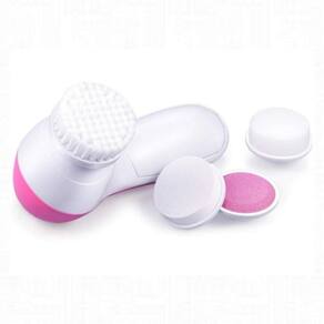 Conteúdo:\ n1 x Escova de Limpeza 2 Esponjas Macias 1\ NMassageador\ NNão inclui baterias. Usa duas baterias AAPAPPLICATIONS: O limpador facial elétrico 5 em 1 é ideal para o cuidado diário do rosto, confortável e muito útil. Esta máquina tem várias funções: Face Cleaner Pore Debugger Massageador facial e corporal\ n\ nComo usar: Coloque o acessório tipo esponja no computador, adicione o sabonete ou gel de limpeza que você usa, depois regue na esponja e massageie a testa, bochecha, nariz e queixo. Troque a cabeça pela escova e faça movimentos circulares suaves para cima na pele, a escova facial tem duas potências, baixa e alta, escolha a que melhor combina com você. A configuração baixa é recomendada para uso no rosto. Quando o tratamento terminar, desligue a escova, enxágue bem com água morna e seque suavemente, evitando a área dos olhos. Ao finalizar essas etapas de limpeza, você pode usar o acessório de massagem para estimular os vasos capilares da pele. Após cada uso, o aplicador de esponja deve ser cuidadosamente limpo com água e deixado secar ao ar livre (NÃO use detergente ou álcool). Recomendações: NÃO use em peles com rosácea, dermatite e acne.