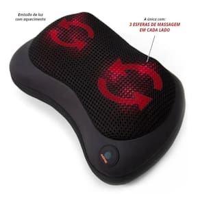 Almofada de Massagem possui sistema de emissão de luz com aquecimento que pode ser ativado ou desativado o aquecimento.