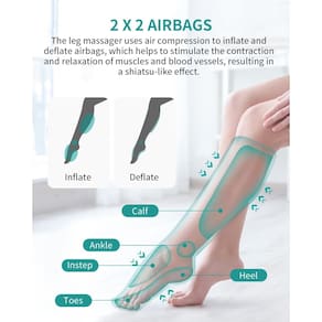 - Maximize sua experiência de massagem nos pés e panturrilhas: alivia efetivamente a fadiga e o desconforto dos pés cansados e da parte inferior da perna. A pressão do airbag no seu tecido também melhorará a circulação sanguínea.