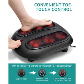 - PORTÁTIL E FÁCIL DE OPERAR: você não precisa se abaixar apenas para ligar/desligar o massageador. Você pode acessar o botão liga/desliga ou ligar o aquecedor simplesmente tocando nele com o dedo do pé!
